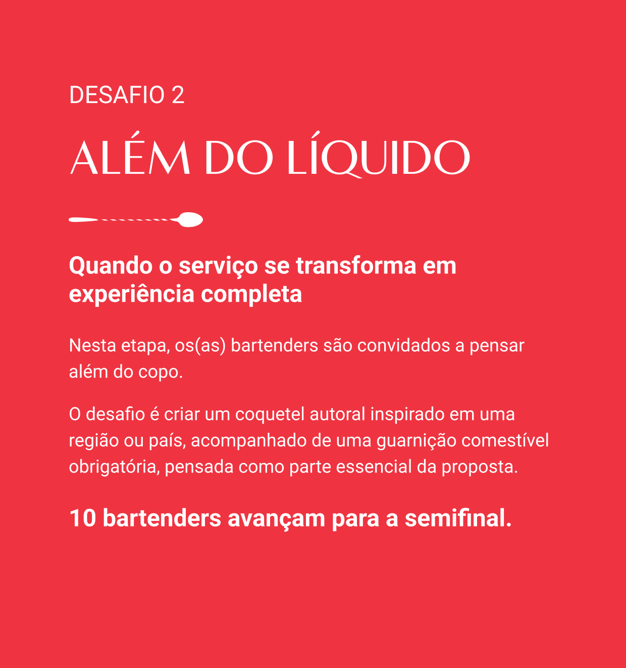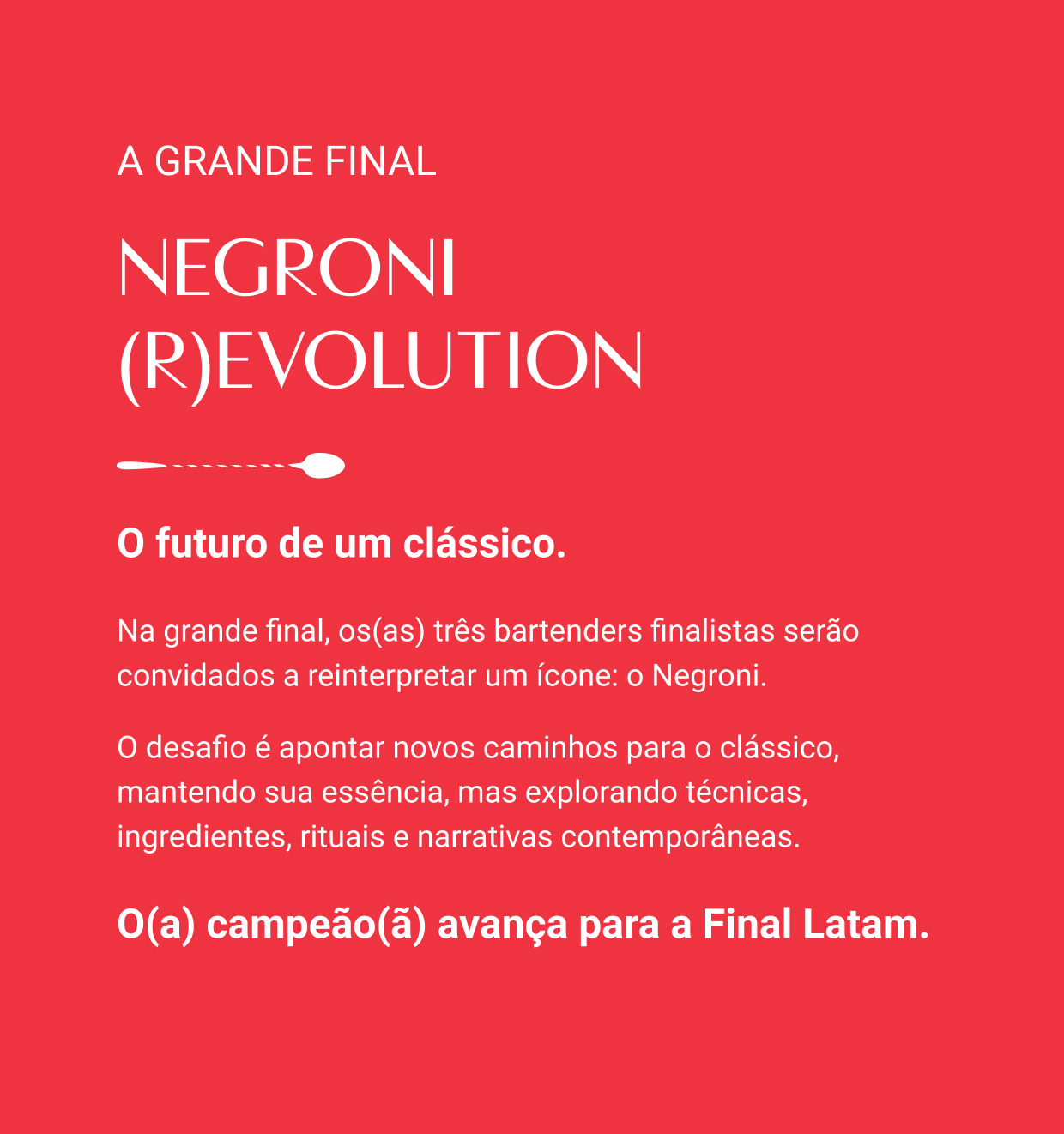 Ao vencer a final brasileira, o(a) campeão(ã) avança para a Final Latam, no México, representando o Brasil em um encontro com os melhores bartenders da região — uma experiência que une competição, troca cultural e reconhecimento internacional.