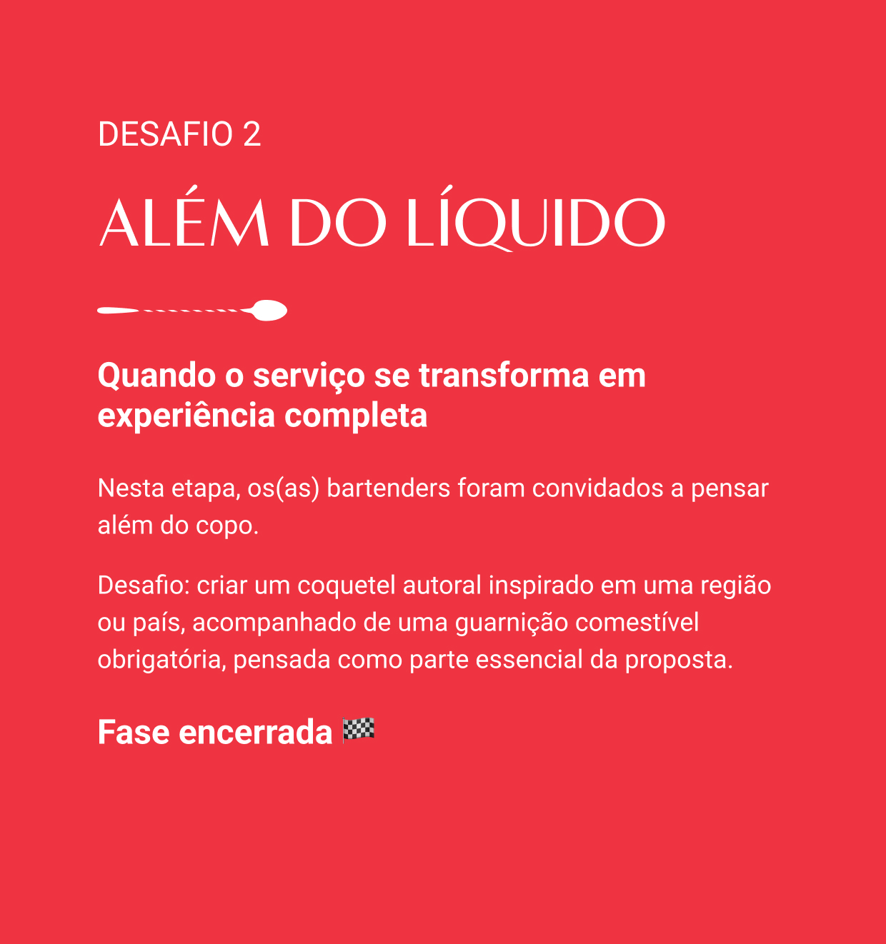 De 15/04 a 17/05, os coquetéis aprovados pelos jurados no Desafio 02 estarão disponíveis nos estabelecimentos onde os(as) semifinalistas atuam.